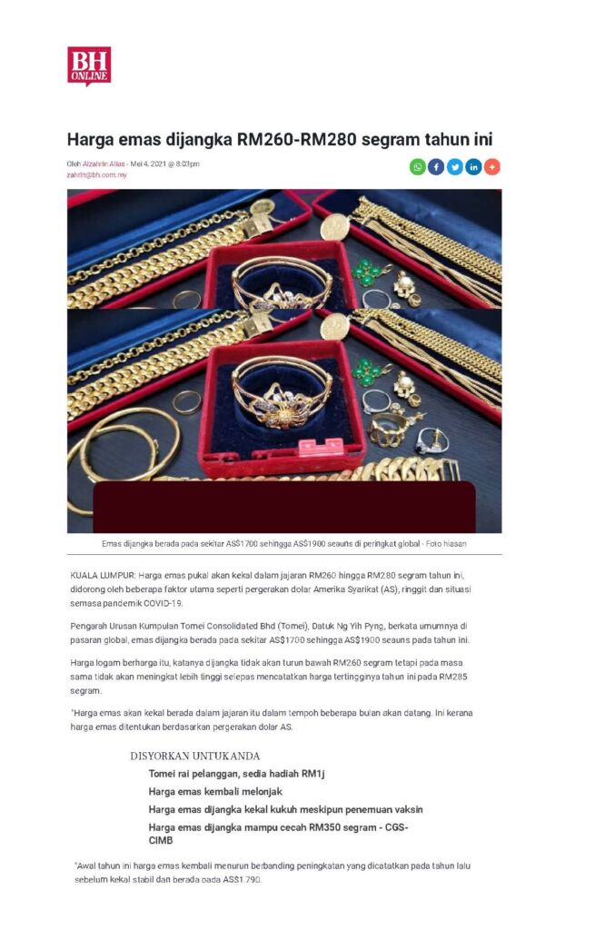 Harga emas dijangka RM260 – RM280 segram tahun ini