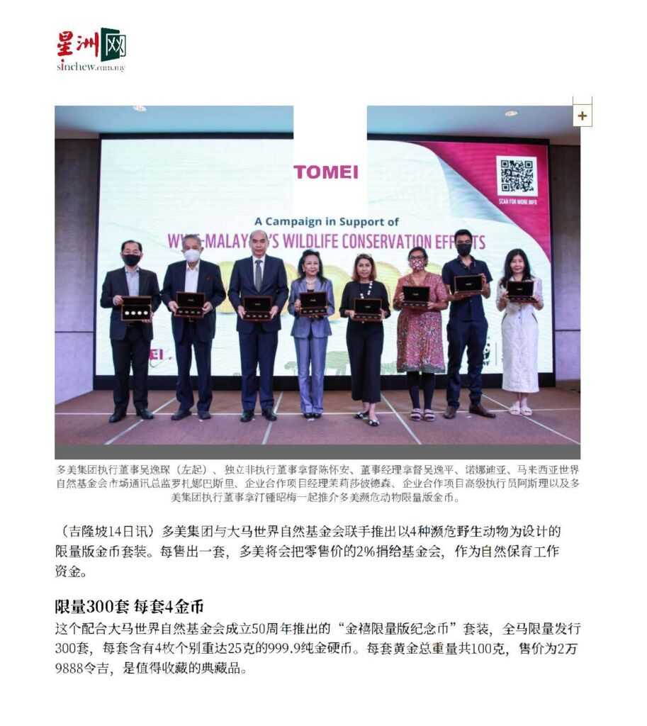 与大马世界自然基金会携手 多美推濒危动物金币