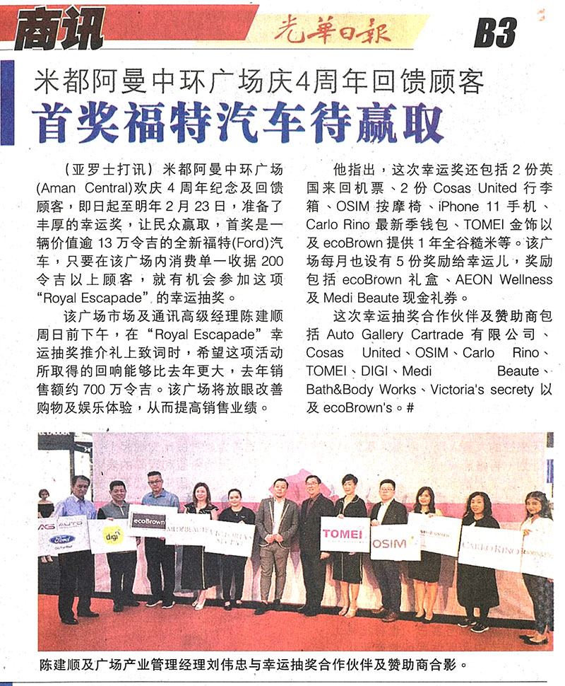 阿曼中环广场庆4周年回馈顾客 首奖福特汽车待赢取